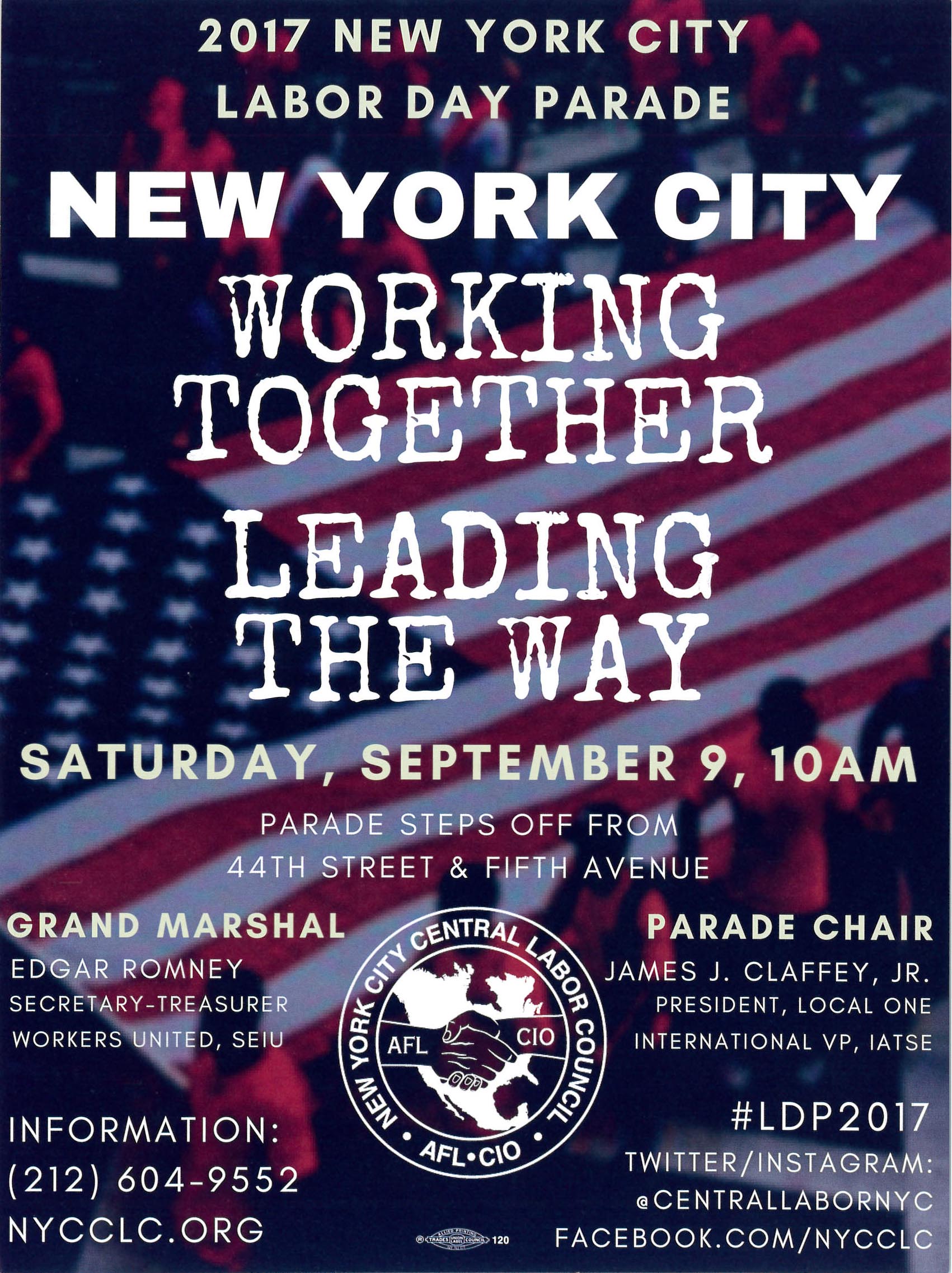 Labor Day Parade, Assemble @ 8:30 am, March @ 10:00 am. on West 44th Street Bet. 6th and 7th Avenue.