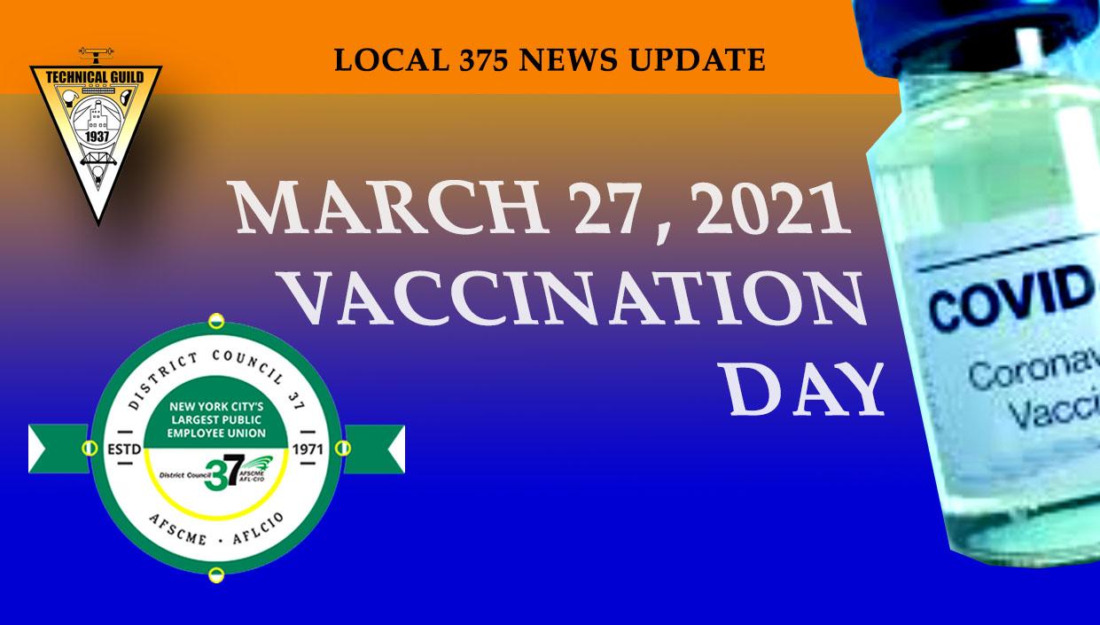 First, we’re hosting a “DC 37 Vaccination Day” on Saturday, March 27 at Citi Field. All eligible members are encouraged to sign up for appointments and invited to bring eligible family members to get vaccinated, as well.